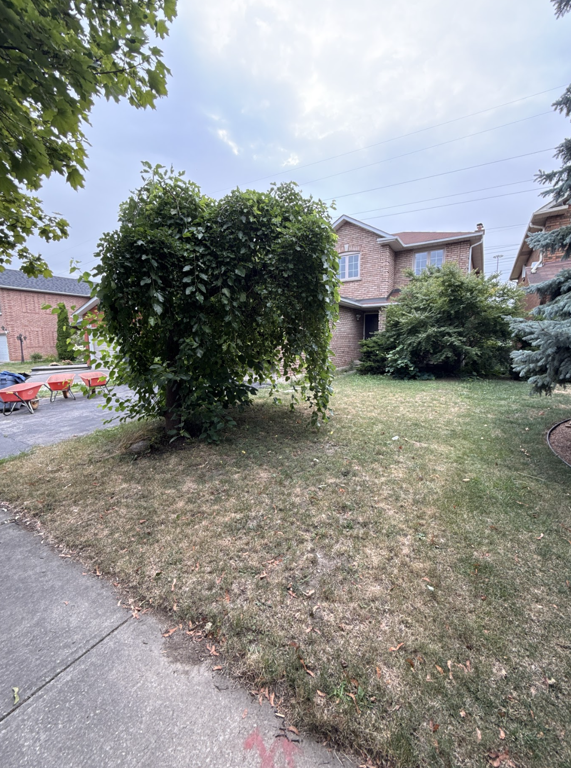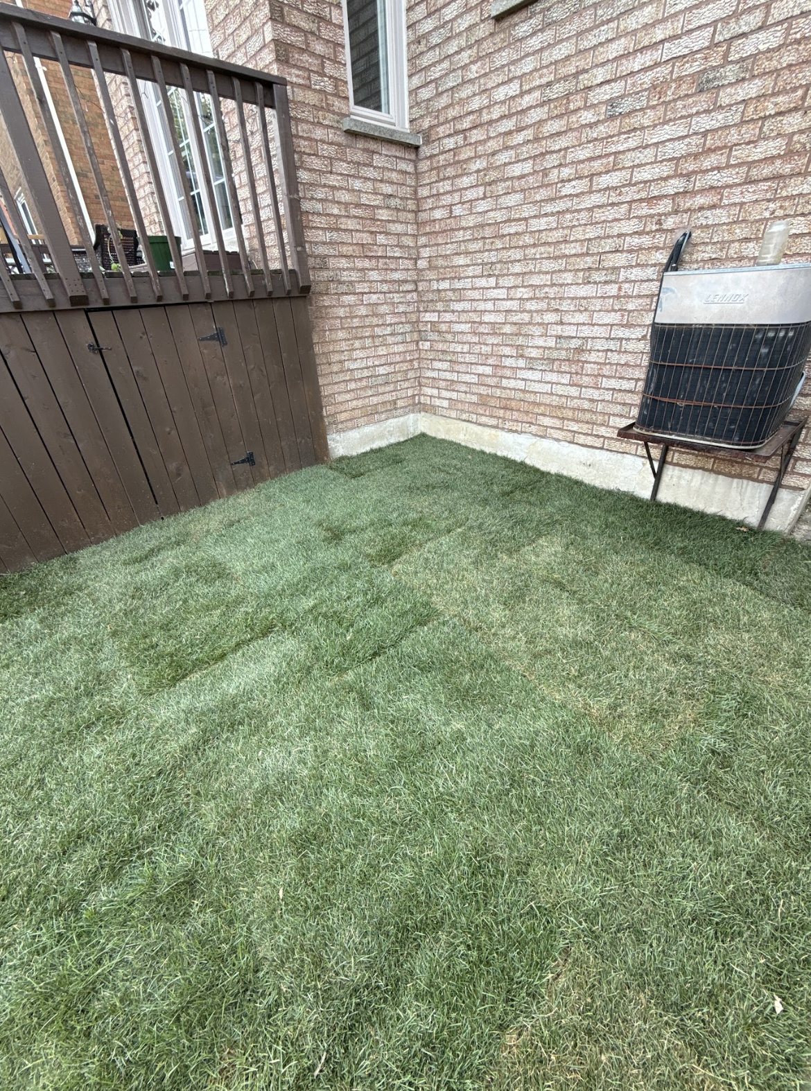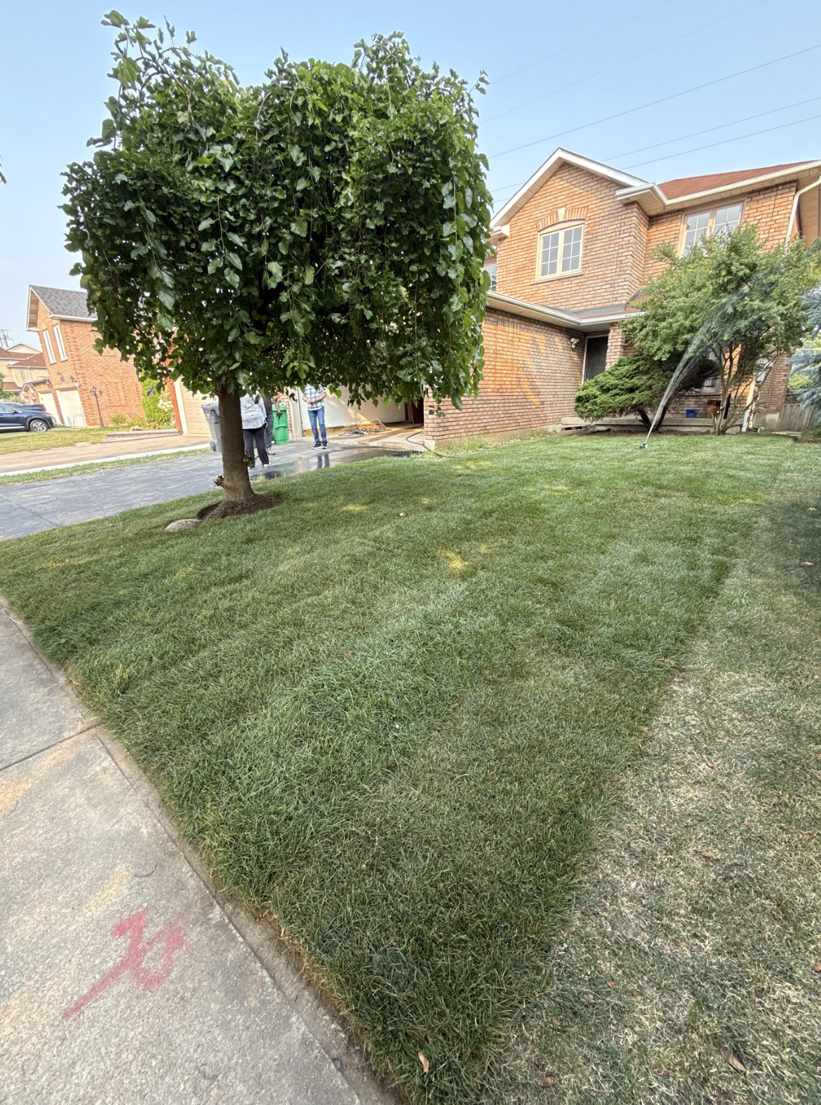 The client’s property in Mississauga was overwhelmed with unwanted plants and overgrowth. The front yard needed fresh sod installation, and drainage issues had to be addressed with the right solution. On top of that, weeds had taken over, making the yard difficult to enjoy.