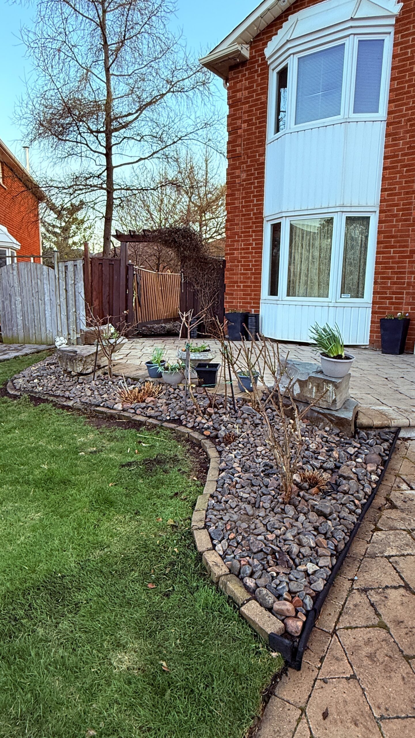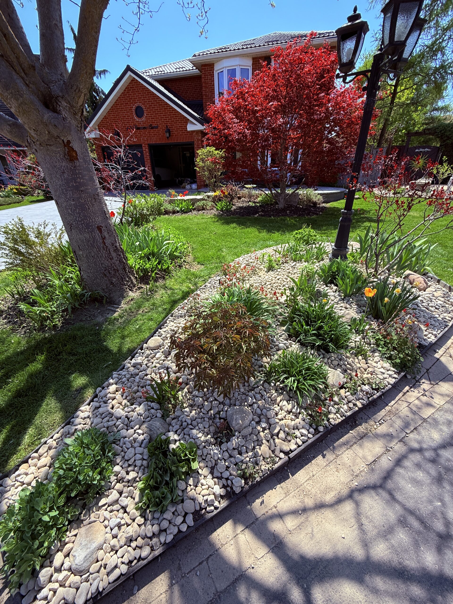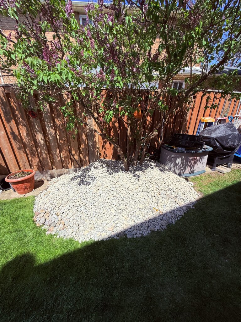 The combination of filter cloth and granite rock not only enhances curb appeal but also improves drainage and reduces erosion — a practical yet stylish solution that perfectly suits Brampton’s variable weather.